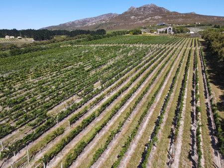 Drone view at vineyards near Stellenbosch on South Africa