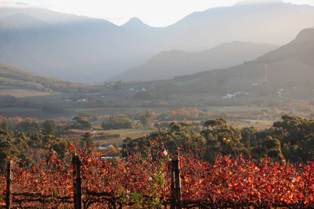 View over vineyard in autumn South Africa