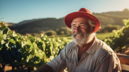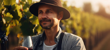 Joyful Vintner Savoring His Vineyard's Finest. Generative AI