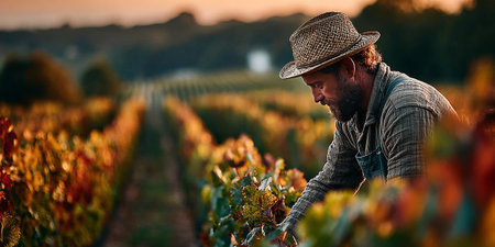 In vibrant vineyards viticulturist highlights meticulous care sunlit dedication to winemaking craft