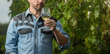 cropped enologist with wineglass. sommelier. farmer drink wine. cheers. vinedresser drinking.