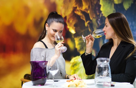 Two beautiful women having fun in a wine bar