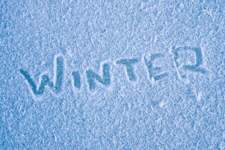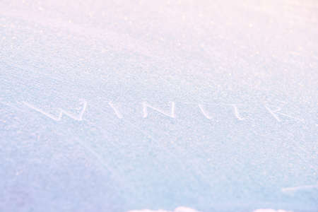 The inscription: winter on a frozen winter window. Background.