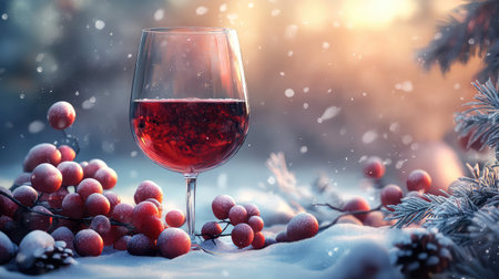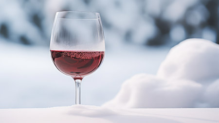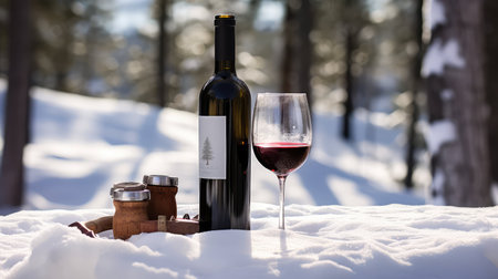 snow winter red wine illustration cozy glass, bottle vineyard, rich deep snow winter red wine