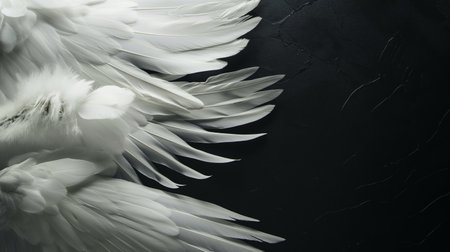 This stunning image showcases elegantly displayed white feathers of bird wings, representing beauty and grace in nature, perfect for various creative projects.
