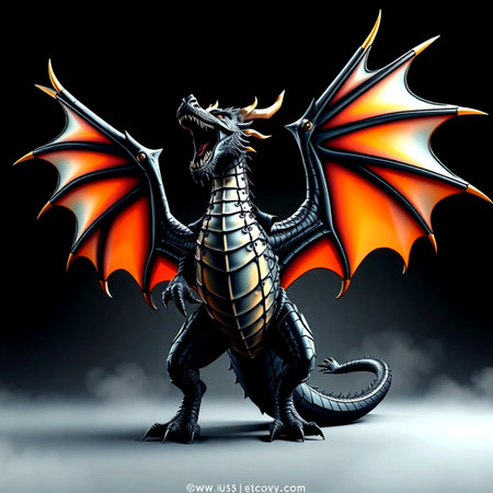 Intricate steampunk mechanical dragon with glowing wings and gears.