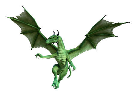 3D rendering of a green fantasy dragon isolated on white background
