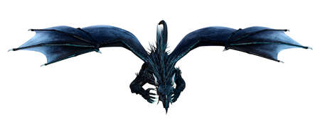 3D rendering of a fantasy black dragon isolated on white background