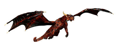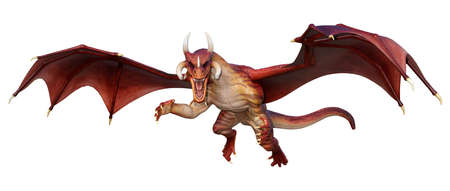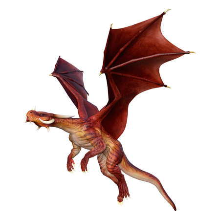 3D rendering of a red fantasy dragon isolated on white background