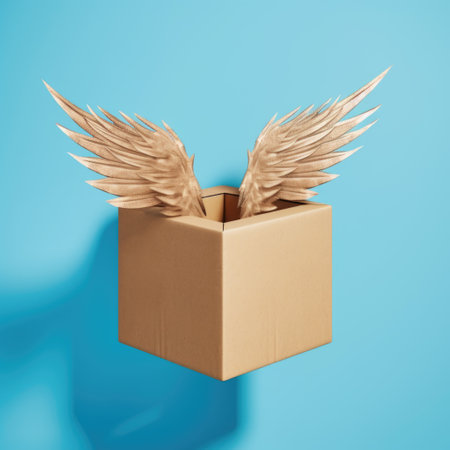 Magic wings with glowing feathers create an enchanting visual effect on a dark background