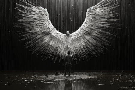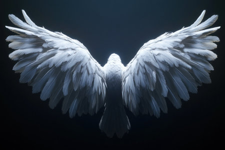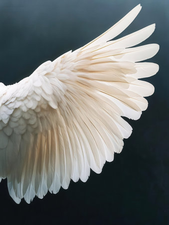 Stunning white wings made of feathers resting against a contrasting dark background, evoking inspiration.