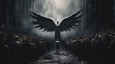 AI Generated. Silhouette of a Man with Dark Wings in a Dramatic Studio Setting