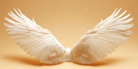 Elegant white wings spread against a soft orange background symbolizing freedom and purity.