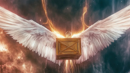 illustration of a radiant angel with white feathered wings, long golden hair, and a glowing aura, holding a luminous gift box toward the screen, celestial sky backdrop, fantasy style, female character --chaos 12 --ar 16:9 --weird 150 --v 6.1 Job ID: 9f0ba484-347e-4997-b89c-6c4ea8d3b29c