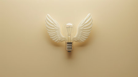 Light bulb with wings on beige background, concept of creative ideas and innovation.