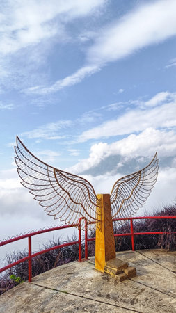 Wing statue for tourism photo spot with blue sky and white clouds background