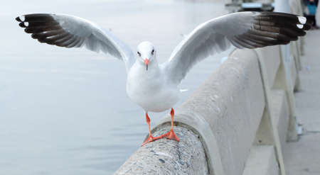 Seagulls are about to fly, background, flocks of seagulls flying.at Bangpoo, Thailand.