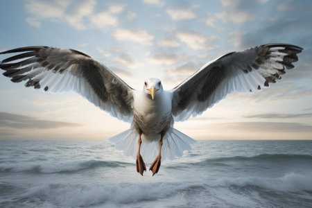 wide wingspan of albatross against cloudy sky, created with generative ai