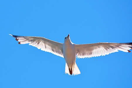 Beautiful white seagull flying on perfect blue sky