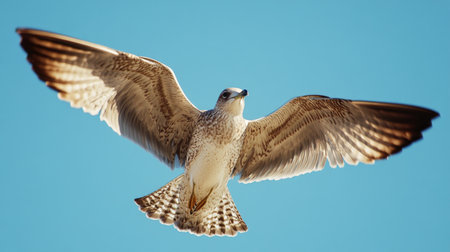 Bird soaring gracefully through clear blue sky