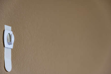 Selective focus on adhesive strip wall hanger that can be removed by pulling tape