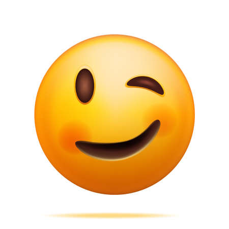 3D Yellow Happy Emoticon with Winking Face