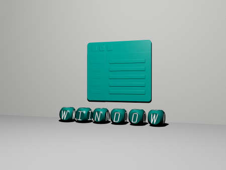 3D graphical image of WINDOW vertically along with text built by metallic cubic letters from the top perspective, excellent for the concept presentation and slideshows. background and architecture