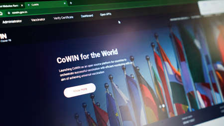 Dumai, Indonesia - 09 November 2021: website cowin.gov.in. website india goverment. website covid india