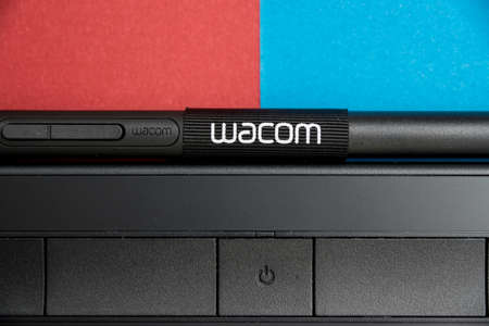 CLUJ, ROMANIA - NOV 08, 2019: Wacom brand illustrative editorial. Wacom is a Japanese company headquartered in Japan, that specializes in graphics tablets and related products. Wacom Intuos M.