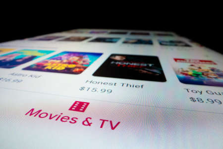 New York, USA - 9 April 2020: Netflix Sign In page website on laptop screen close up. Man using service on display, blurry background, Illustrative Editorial.