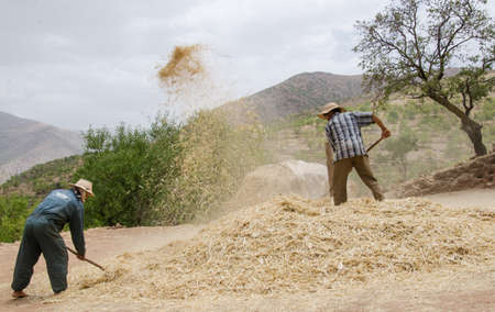 Berber villages, the stripping of barley in the high Moroccan mountains, villagers full of courage, provided with a great will, they use a very old method.