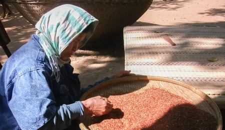 Farmer demonstrates rice seed selection.Nakhonratchasima,Thailand,January 2017