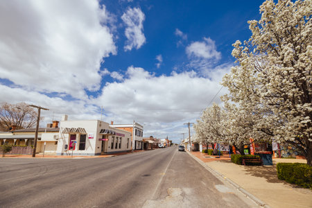 Nanton, Alberta - May 7, 2021: Facade of historical buildings in the historic town of Nanton.