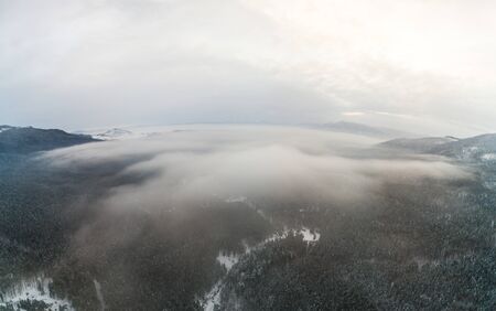 Winter Forest clouds Landscape aerial view trees background Travel serene scenery