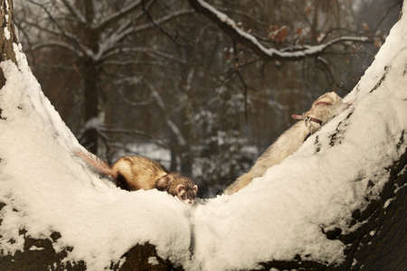 Winter wildlife nature snow trees weather white brown blue sky background. High quality photo