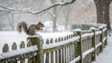 A merry squirrel in a knitted cap adds a touch of whimsy to a day of skiing in the snow.
