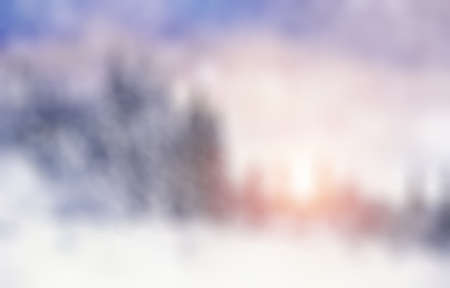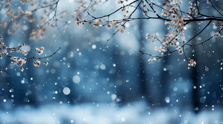 Beautiful Winter Abstract Bokeh with Snowy Tree Branches and Soft Blurred Landscape Background