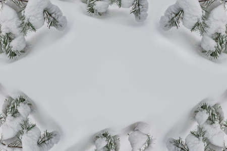 The branches of the snow covered Christmas tree. greeting card