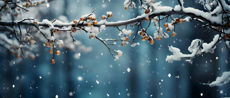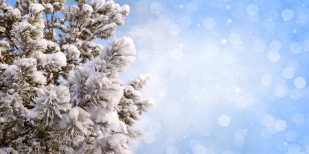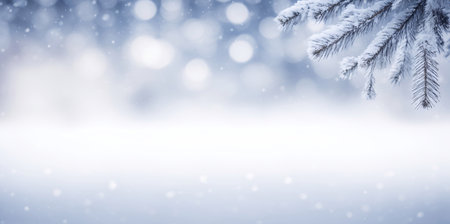 This serene winter background showcases a picturesque scene with snowladen tree branches. It is an ideal choice for Christmas promotions as well as for seasonal designs that invoke festive cheer