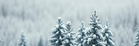 Captivating snow-covered evergreen branches create a serene winter atmosphere with a soft blurred background, perfect for seasonal themes and holiday decor.