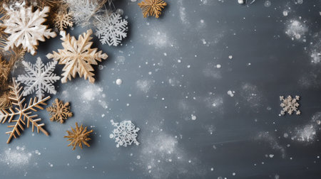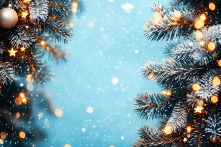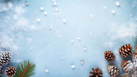 Christmas tree pieces winter-themed background with ample copy space. Generative AI