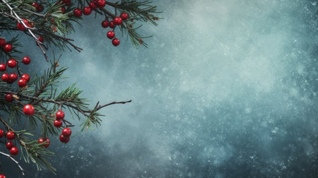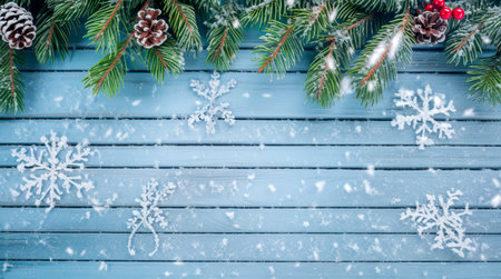 Christmas backdrop with spruce branch and snowflake border, ideal for custom text