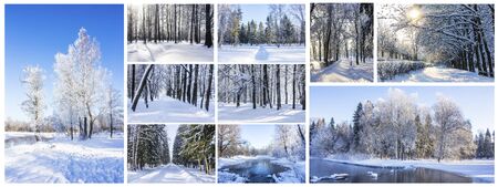 Winter solar Park . Alleys of the Park. Nature. Winter nature. Winter pictures. Snow. Landscape. Collage. Selection of photos of the winter Park