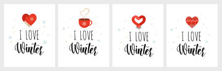 Winter love. I love winter cards, stickers, icons with lettering and flat vector icon, isolated on white. Concept Christmas vector design