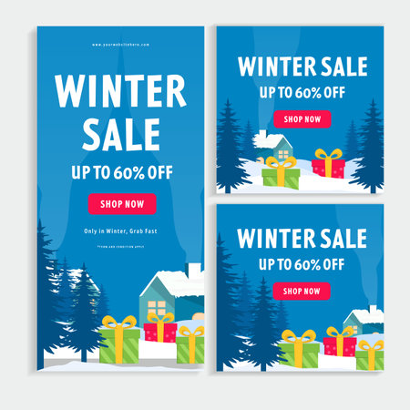 Collection of abstract background designs, winter sale, social media promotional content. Vector illustration