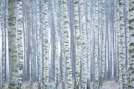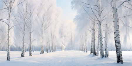 Birch forest winter landscape.