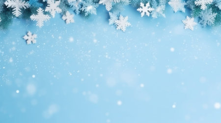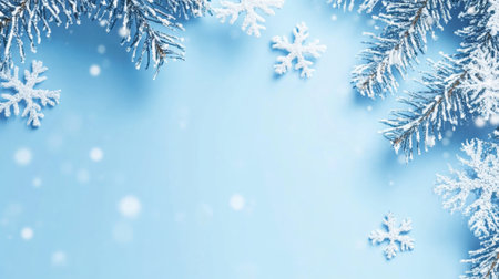 Christmas backdrop with spruce branch and snowflake border, ideal for custom text