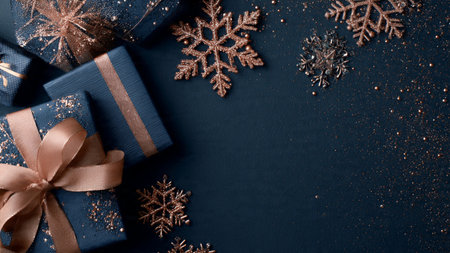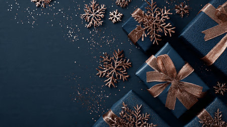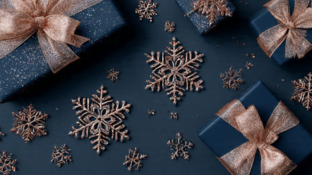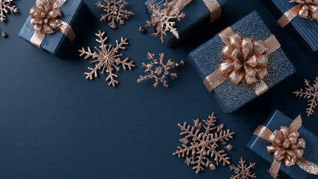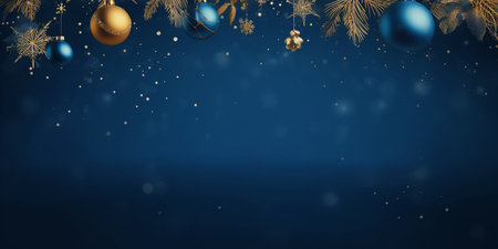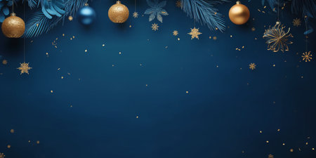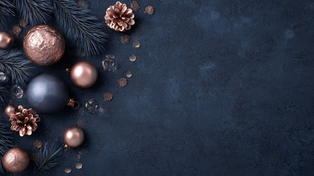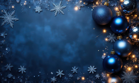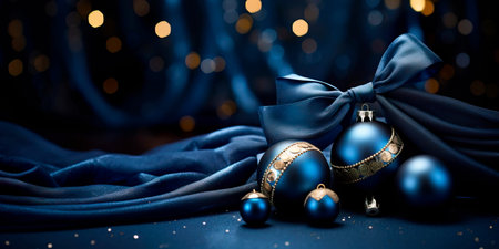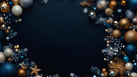 Elegant Christmas scene with ornaments and dark blue backdrop
