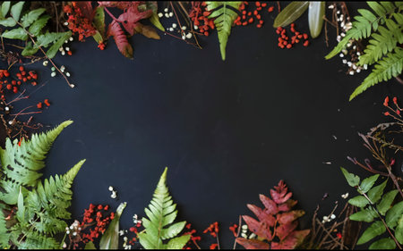 Stunning arrangement of leaves and berries set against a vibrant blue background, perfect for holiday projects, invitations, and seasonal celebrations.