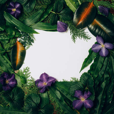 Cover label or postcard. Banner cover with floral frame from plants. Background